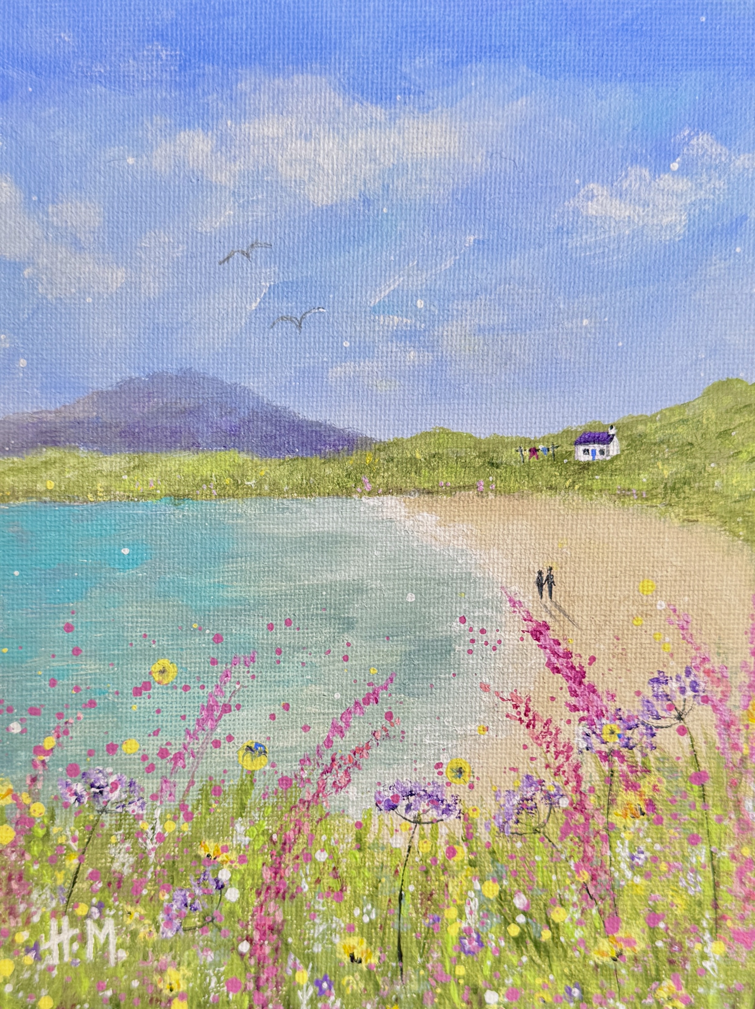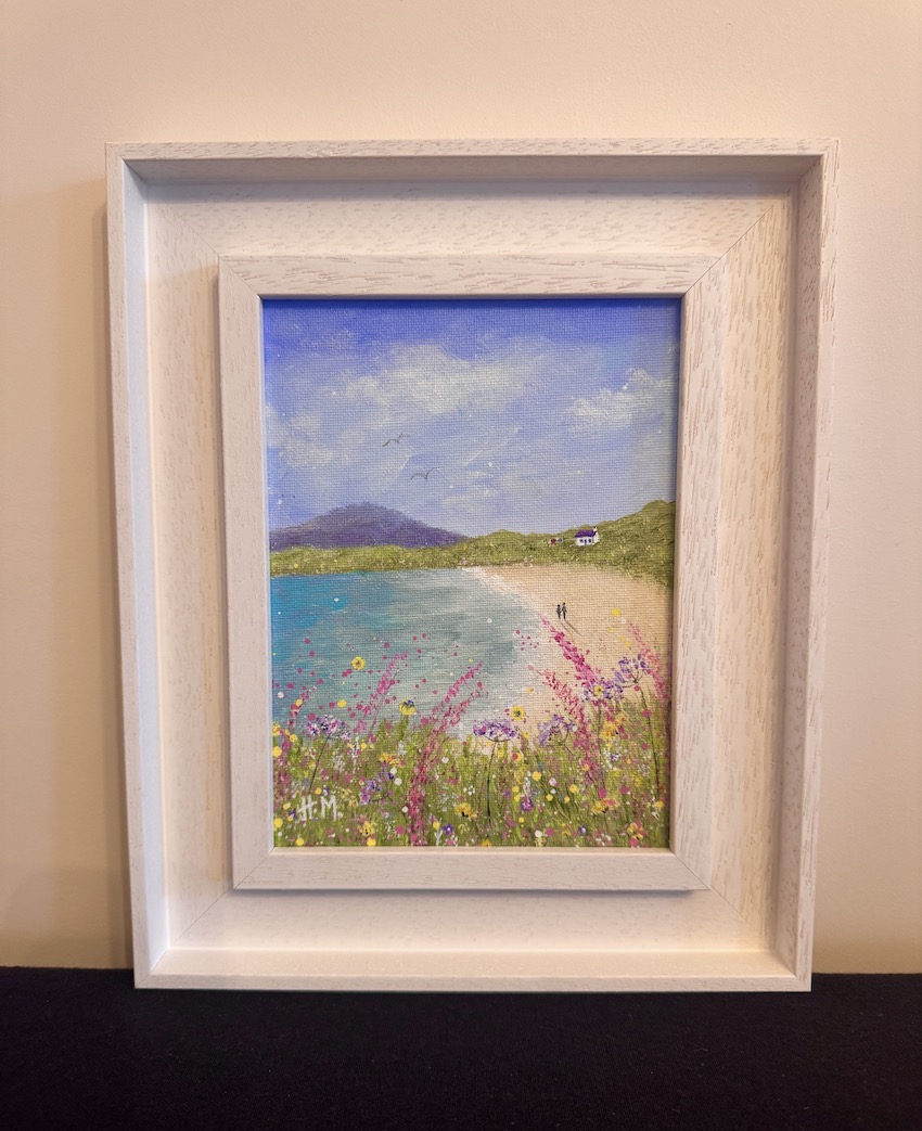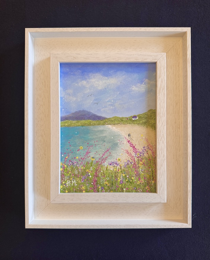 Hebridean Dreams is a framed original painting inspired by our trip to the Outer Hebrides in June 2025. We visited this pretty little beach at Horgabost on the Isle of Harris, it was just beautiful.