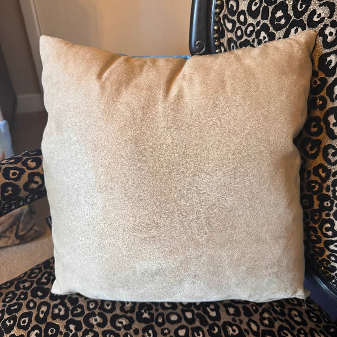 Cushion is 43cm square and has a plain, natural coloured backing.