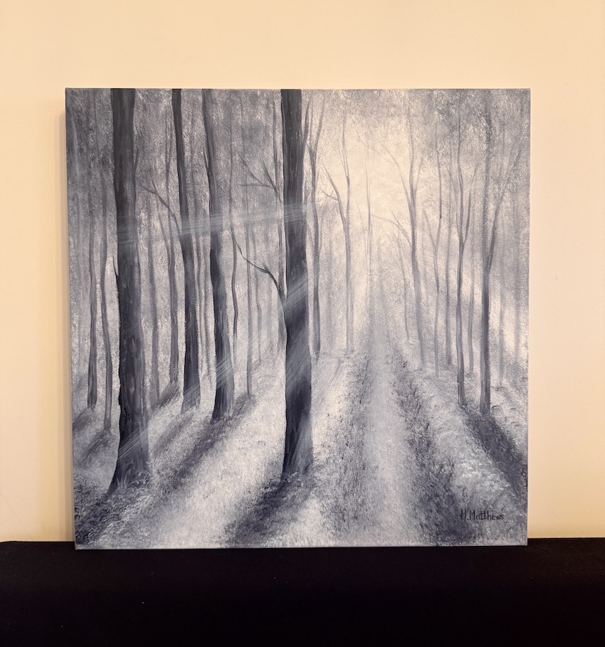 This original was part of a collection of dramatic, ethereal paintings inspired by my childhood walks in the forest.