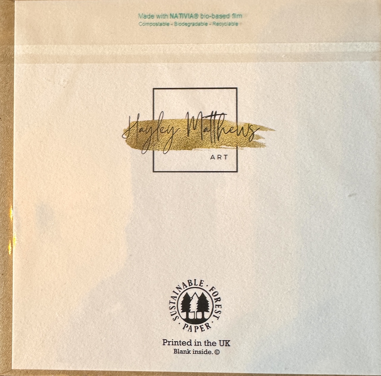 Suitable for all occasions as its blank inside. Hayley Matthews Art logo on the back of the card.